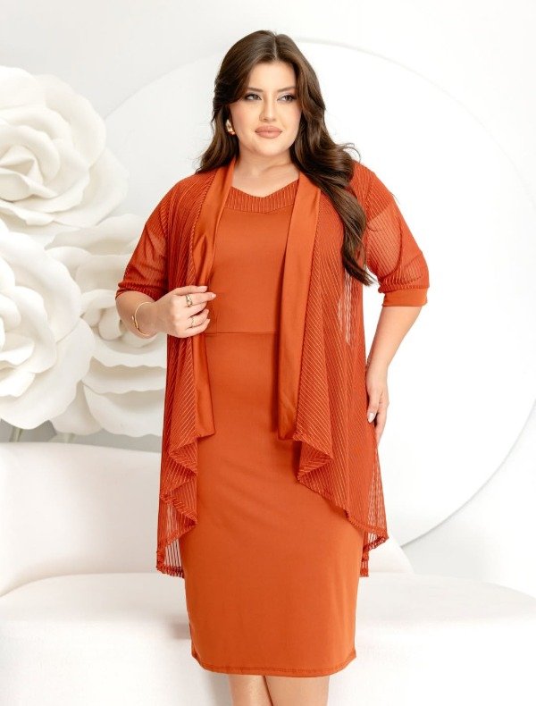 Conjunto vestido y saquito importado TERRACOTA (Art. 279) Talles L, XL y 2XL