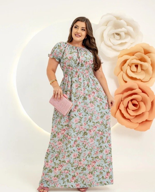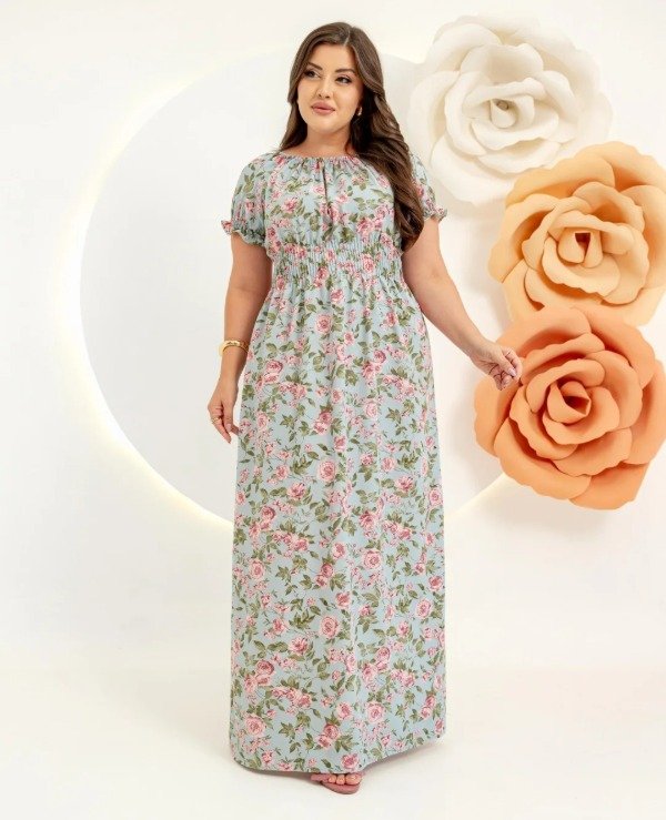 Vestido largo importado manga corta.