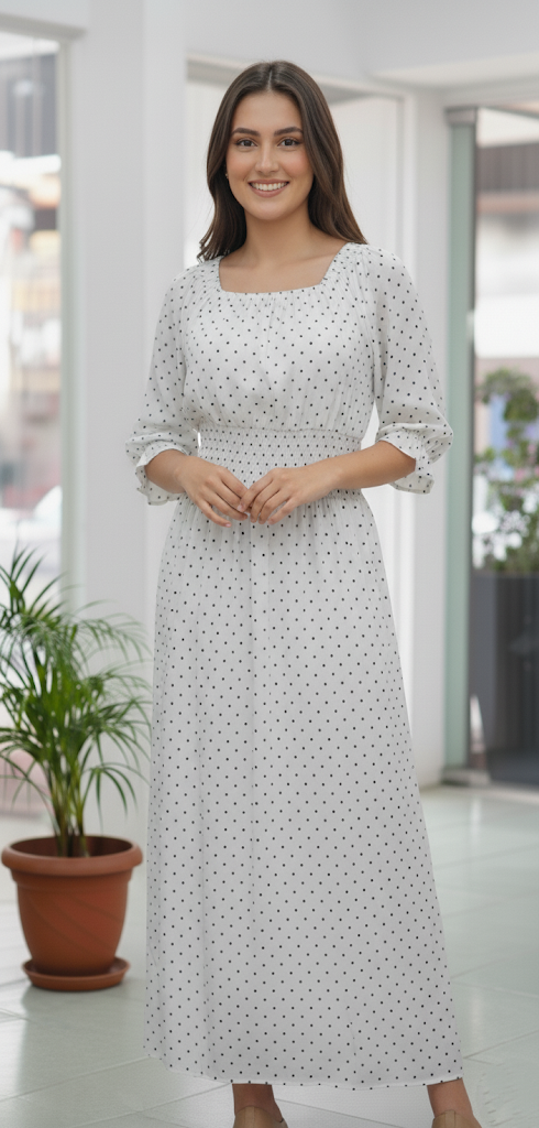 Vestido con bolsillos estampado BLANCO (Art. 238) Talle UNICO (aprox M/L)
