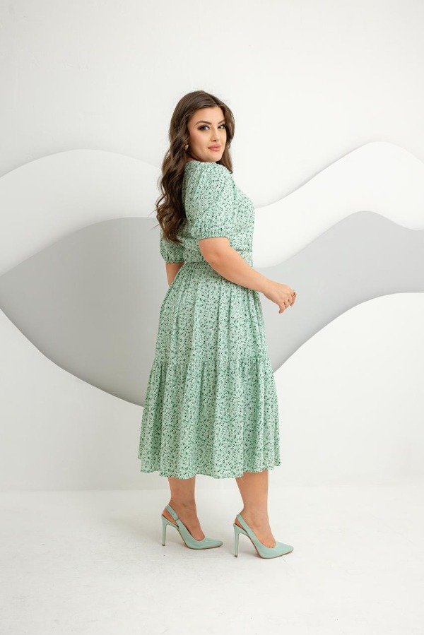 Tiene cierre invisible en la espalda y elástico en la cintura.
