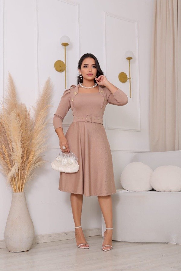 Vestido importado manga 3/4 BEIGE (Art. 218) Talle único (M/L)
