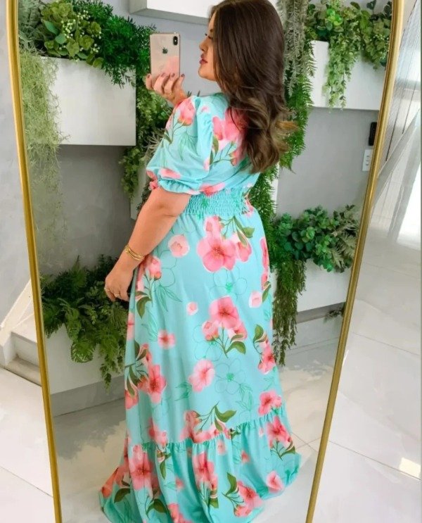 Vestido largo importado escote V (Art. 832)Talle UNICO (aprox L/XL)