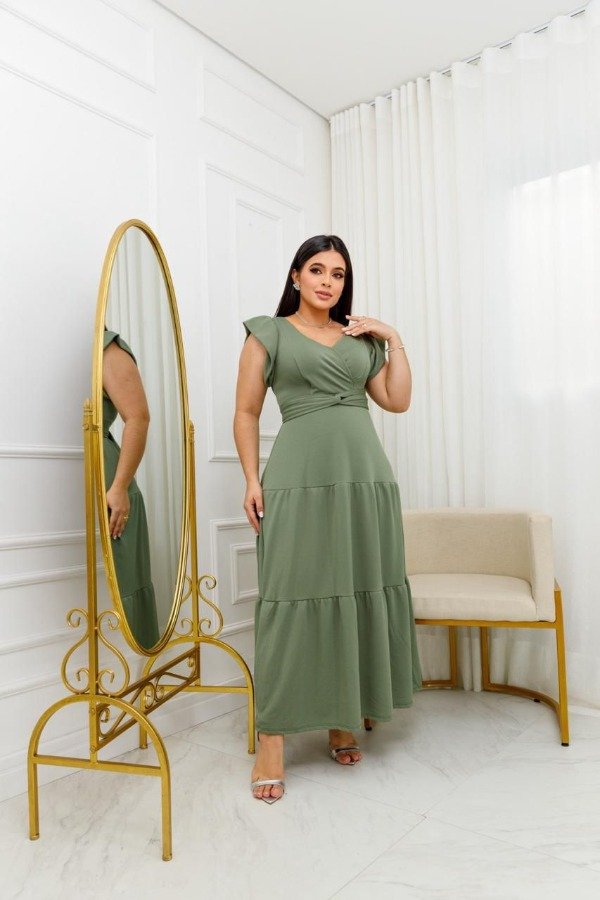 Vestido largo importado VERDE SECO (Art. 927) Talle Unico (L)